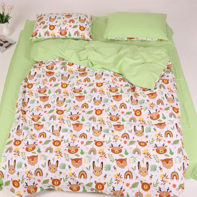 Комплект постільної білизни Ранфорс Підлітковий Wild Animals 143х210 см Зелений