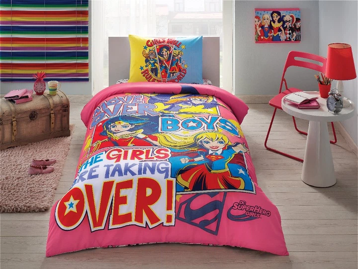 Підлітковий комплект Disney TAC Super Hero Girls Ранфорс простирадло на резинці 160х220 см наволочки 50х70 см