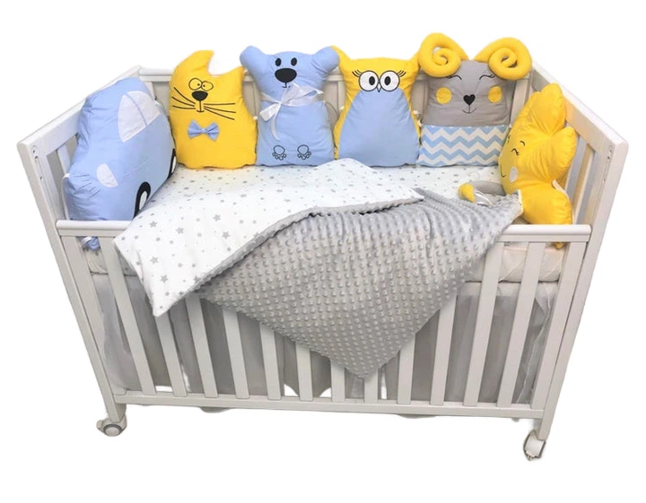 Дитячий постільний набір ліжко з бортиками в ліжечко Звірята блакитно-жовті 120*60 см