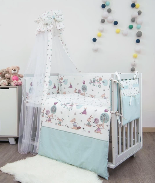 Постільний комплект з бязі дитячий Forest mint Twins Sweet, 8 елементів, з м'ятним балдахіном