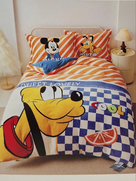 Теплий флісовий комплект постільної білизни полуторний Koloco Міккі та Плуто