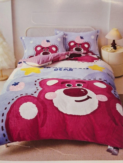 Теплий флісовий комплект постільної білизни полуторний Koloco Рожевий ведмідь