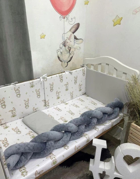 Комплект постільної білизни в дитяче ліжко 120 х 60 см Бортики, косичка та дві простинки - Зайчата