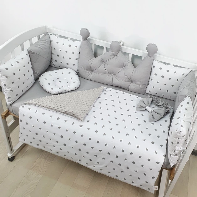 Комплект постільної білизни з ковдрою та бортиками на 4 боки ліжка 120х60см - Корона сіра із каретною стяжкою