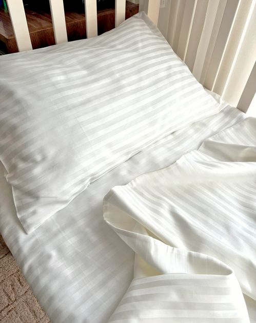 Дитяча постільна білизна півтораспальна страйп сатин 100 бавовна Молочний (підковдра 150х220)
