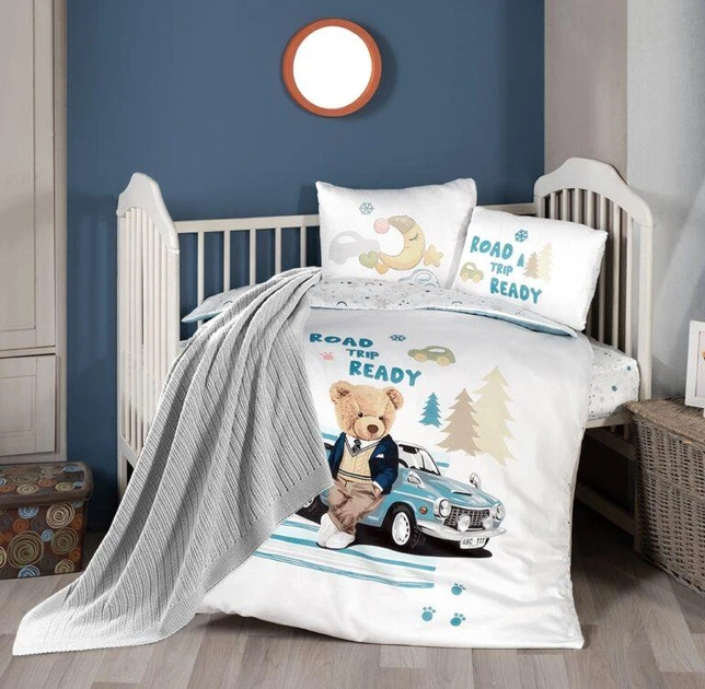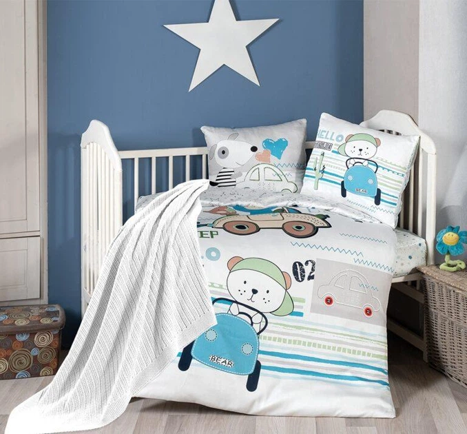 Комплект дитячої постільної білизни в ліжечко з пледом First Choice Baby 100х150 Сатін-Digital Ведмідь