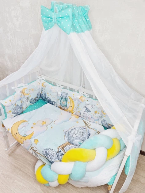 Комплект постільної білизни в дитяче ліжечко Принт Зефірка з бортиками подушками та косою
