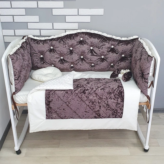 Комплект Преміум постільної білизни з ковдрою, бортиками з оксамиту із ґудзиками -Шоколадний -у ліжко 120х60см