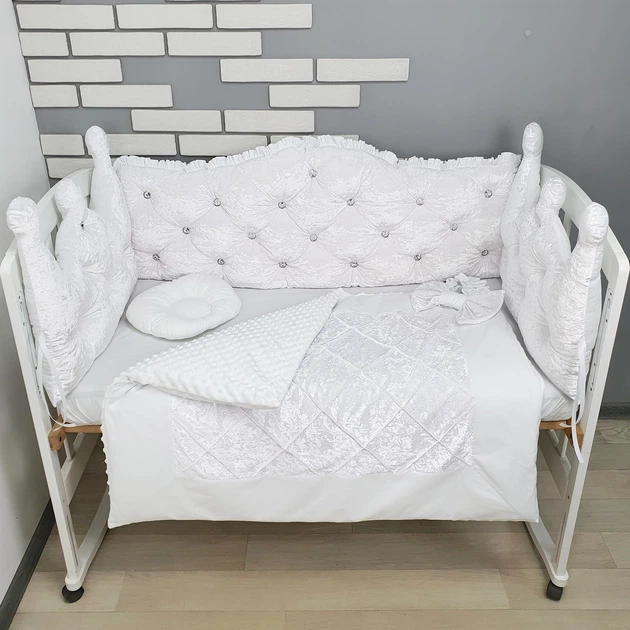 Комплект Преміум постільної білизни з ковдрою, бортиками з оксамиту зі стразами - Білий - у ліжечко 120х60см