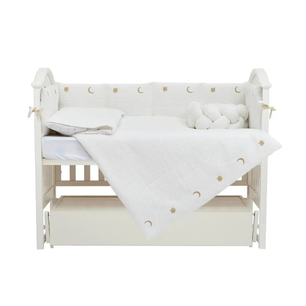 Постільний комплект дитячий Twins Cotton з вишивкою на 7 предметів, ecru/gold