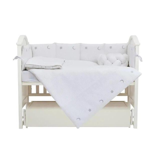Постільний комплект дитячий Twins Cotton з вишивкою на 7 предметів, white/silver
