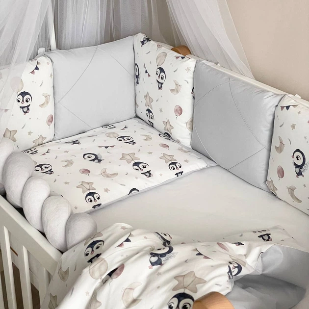 Постільний комплект для новонароджених у ліжечко Happy night Пінгвін, колір сірий