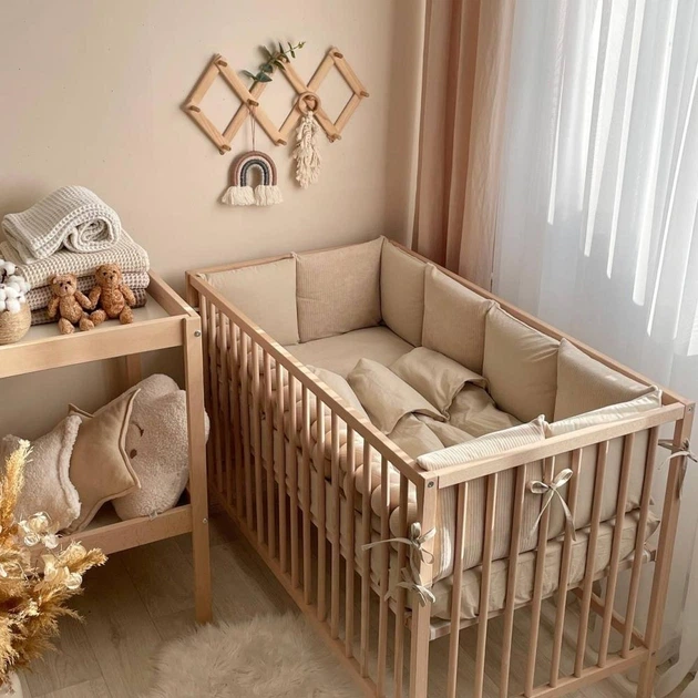 Постільний комплект для новонароджених в ліжечко Гусики, колір бежевий