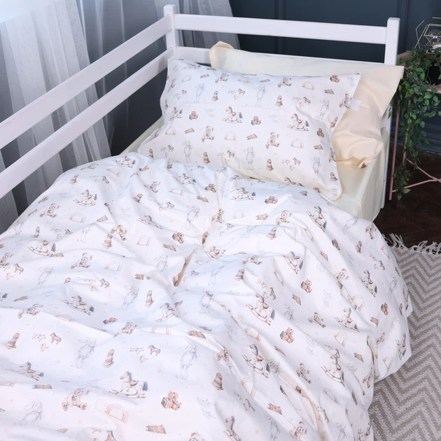 Комплект дитячої постільної білизни Mirson 110х140 см Kids Time 22-1422 Warm toys Сатин (2200011186924)