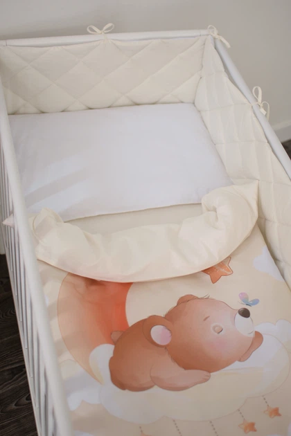 Комплект постільної білизни у ліжечко дитячий Baby Veres 110 x 90 см Ведмедик стьобаний Ранфорс + сатин (219.13)