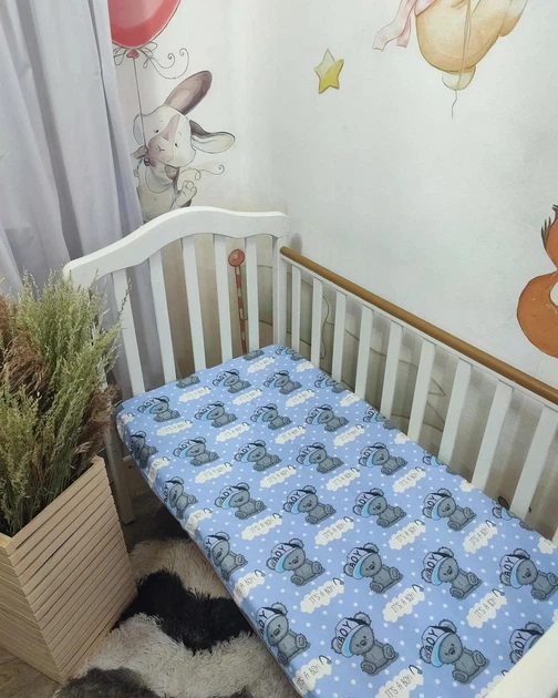 Простирадло на резинці в дитяче ліжечко 120*60 см байкове Ведмедики