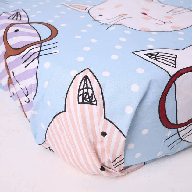 Простирадло на гумці дитяче Бязь Крутий кіт Блакитний з малюнком 70*130 висота 10 см