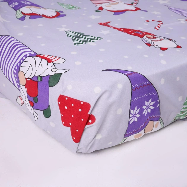 Простирадло на гумці дитяче Бязь Новорічні гноми Різнобарвний 70*130 висота 10 см