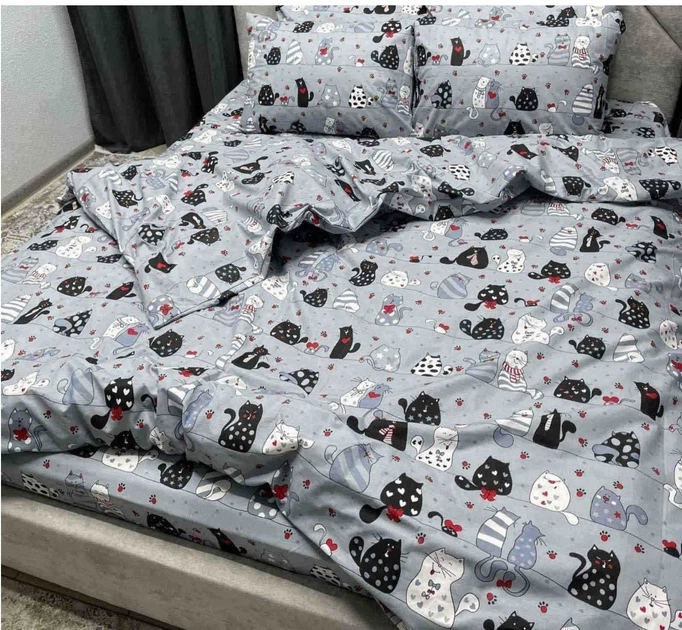 Комплект постільної білизни Бязь Голд "Кішечки на сірому" в дитяче ліжечко колиска 110*150 см