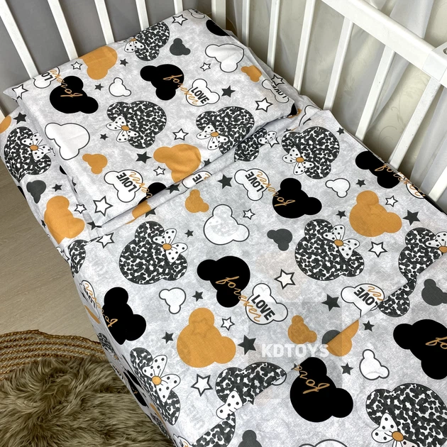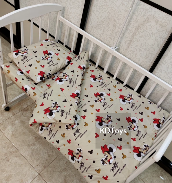Дитяча постільна змінна білизна Qvatro Gold в ліжечко, в манеж 3в1 бежевий міккі: наволочка, підковдра, простирадло