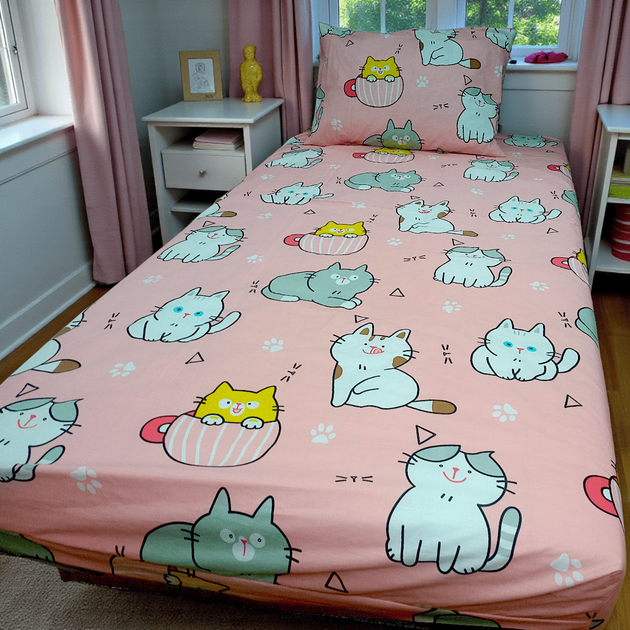 Простирадло на гумці дитяче КотоПузики 0.90Х200+25см+ Наволочка 50Х70