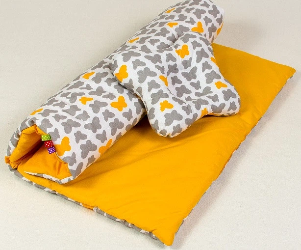 Набір в коляску для новонароджених BabySoon Метелики ковдру 65 х 75 см подушка 22 х 26 см помаранчевий (107)