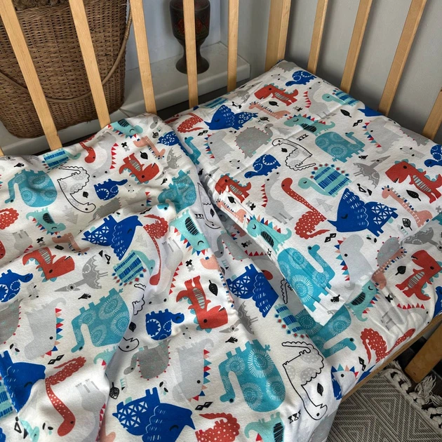 Байковий постільний набір у дитяче ліжечко 120Х60 см 3 предмети Діно