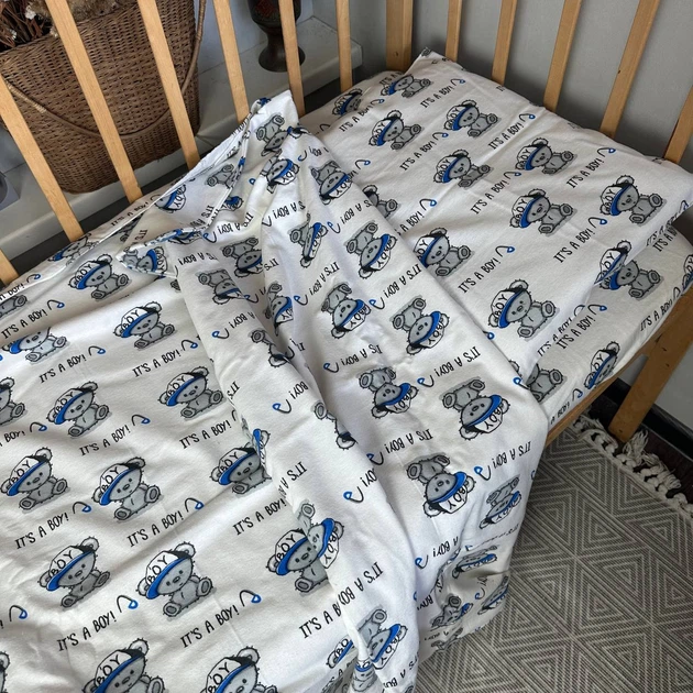 Байковий постільний набір у дитяче ліжечко 120Х60 см 3 предмети Ведмедики бой
