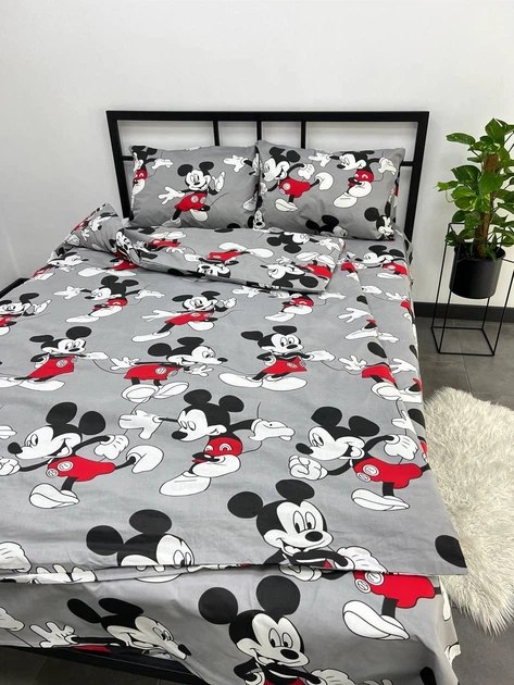 Дитяча постільна білизна для ліжечка 110х140 Бязь Gold Luxe наволочки 40х60 сірий Міккі Маус