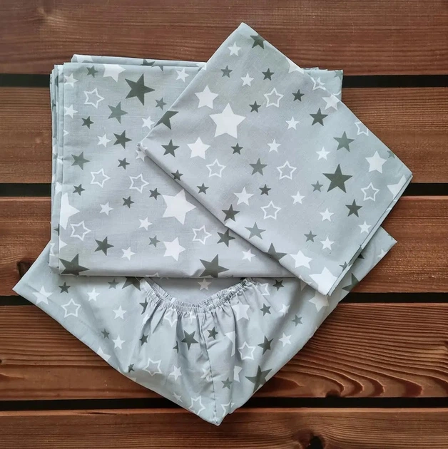 Постільна білизна в дитяче ліжечко (простинка + наволочка + півковдра) бавовна 100 BST Сірий