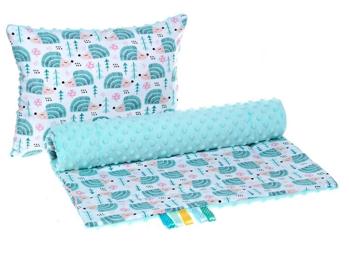 Комплект в дитячу коляску BabySoon М'ятні їжачки ковдру 75 х 78 см подушка 30 х 40 см м'ятний (298)