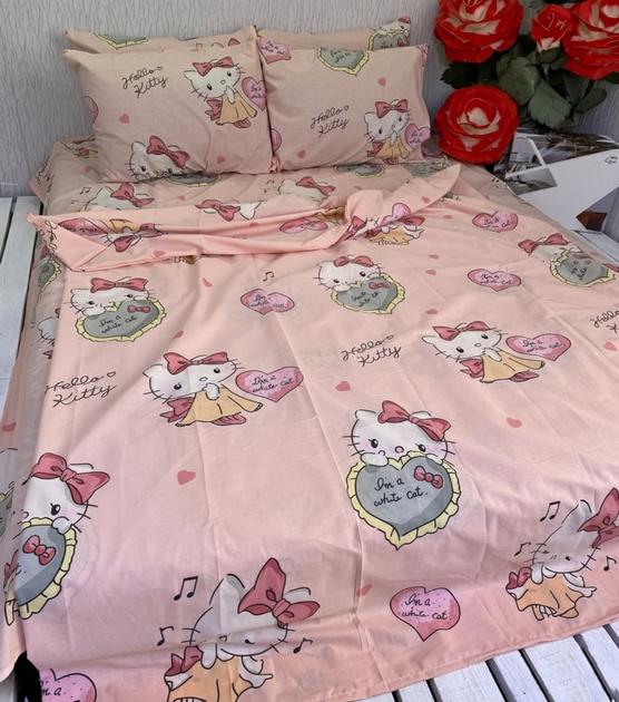 Підлітковий комплект дитячої постільної білизни Хелоу Кіті Hello Kitty бязь голд