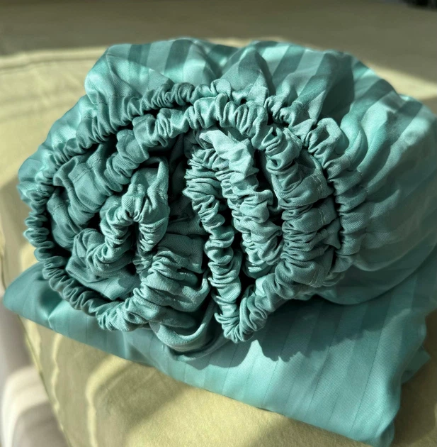 Простирадло на гумці Lavson мерсеризованный страйп сатин 80х160х20 Ментол
