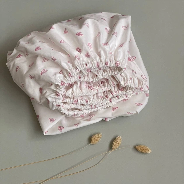 Простирадло на гумці сатинове Anny.Home 160*80 см Милі серця
