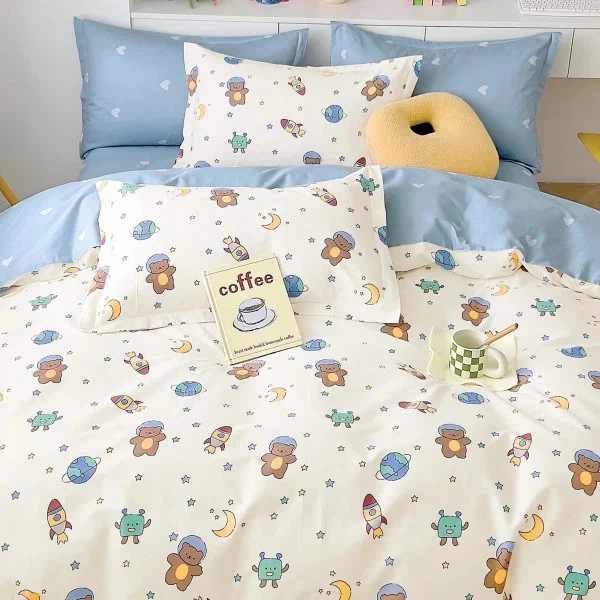 Дитяча тепла байкова змінна постільна білизна в ліжечко 3 в 1 наволочка підковдра простирадло Ведмедики Гьорл