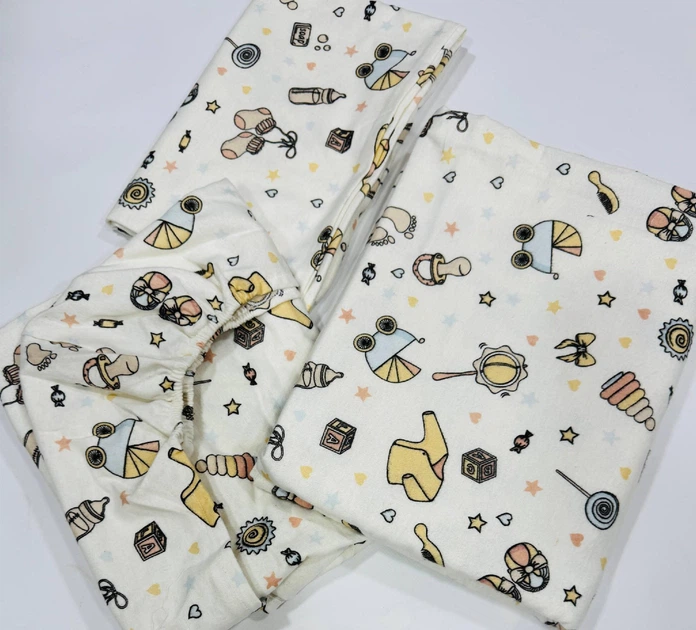 Комплект постільної білизни в дитяче ліжечко Байкове наволочка підковдра простирадла 3в1 (100 хб) біла з малюнком