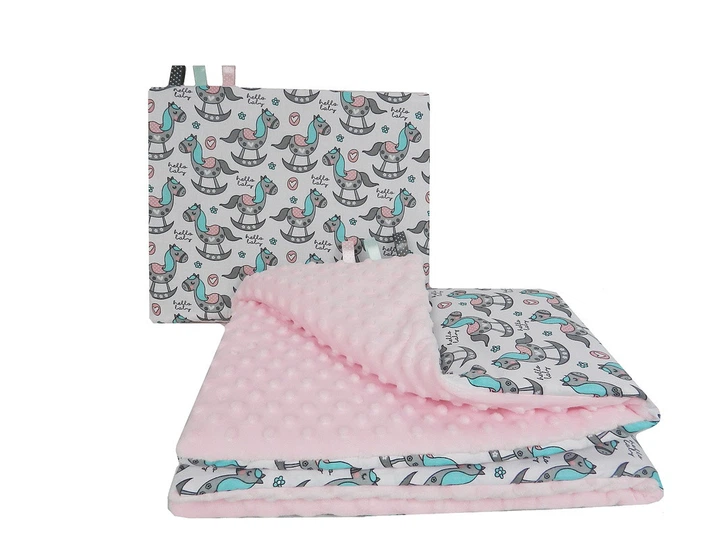 Постільна білизна в дитячу колиску BabySoon три предмета Конячки на рожевому плюше (421)