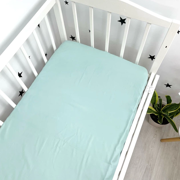 Сатинове дитяче простирадло 160х80 см Oh My Kids Бірюзове