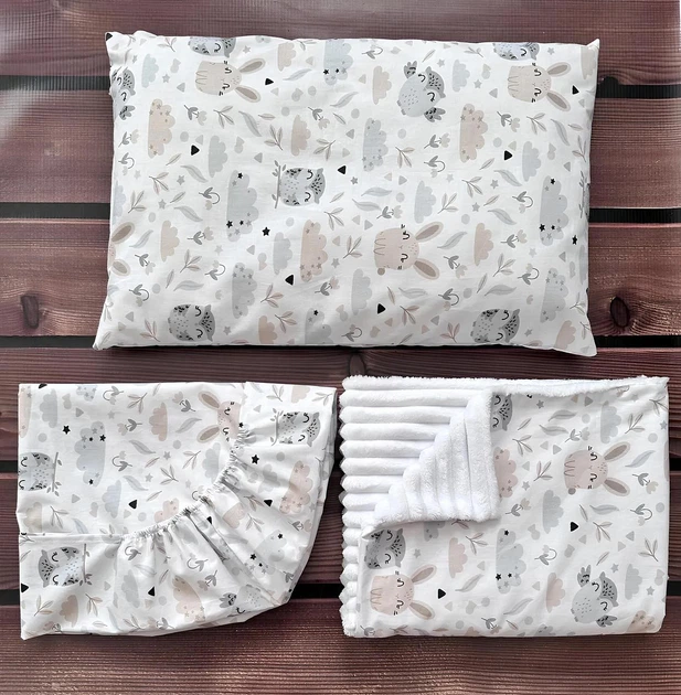Комплект в дитяче ліжечко (простирадло на резинці + подушка + плед) бавовна 100 BST Бежевий з білим