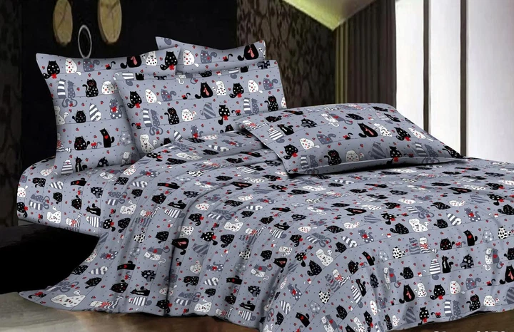 Дитячий полуторний комплект з простирадлом на резинці 90х200 "Котики" з бязі