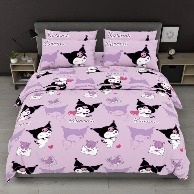 Дитячий полуторний комплект з простирадлом на резинці 90х200 "Kuromi" з бязі