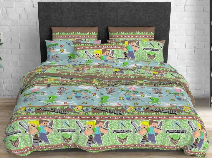 Полуторний дитячий комплект постільної білизни з бязі з простирадлом на гумці "Minecraft"