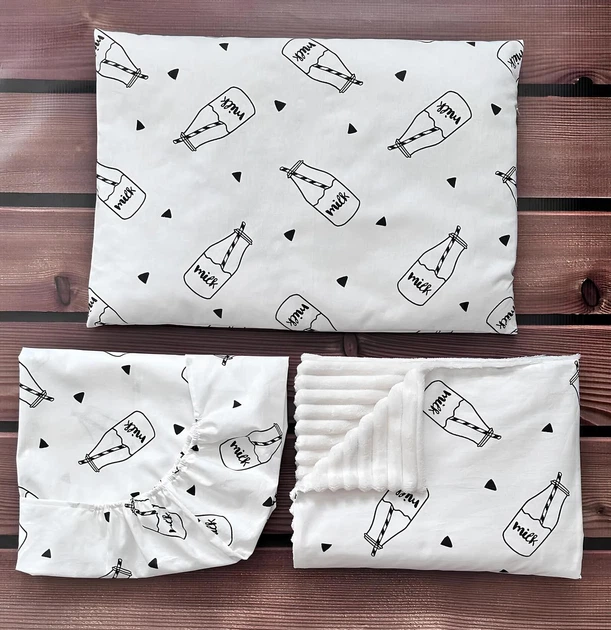 Комплект в дитяче ліжечко (простирадло на резинці + подушка + плед) бавовна 100 BST Молочний з чорним