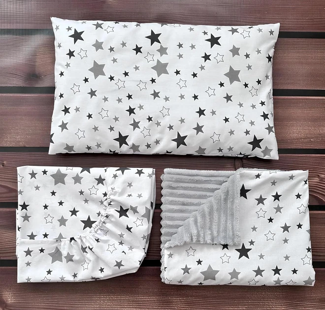 Комплект в дитяче ліжечко (простирадло на резинці + подушка + плед) бавовна 100 BST Сірий з білим