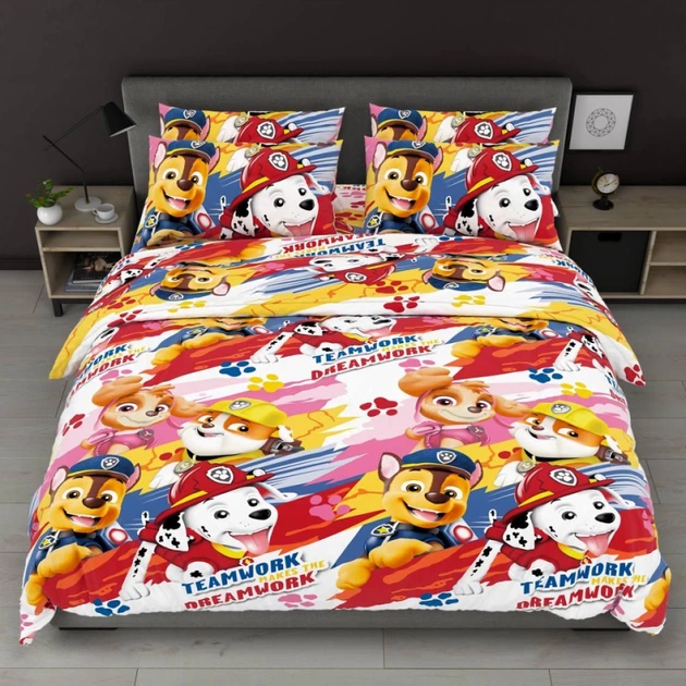 Дитячий полуторний комплект з простирадлом на резинці 90х200 "Teamwork" з бязі