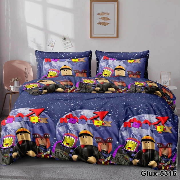Дитяче ліжко Blox Buddies ROBLOX. Полуторний Комплект білизни Роблокс. Gold Lux. Бязь, Коттон, Синій