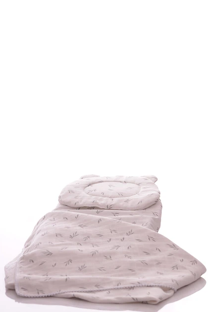 Набір в коляску подушка 29*24см+літня ковдра 98*78см+непромокане простирадло 88*40см на мусліновій гумці з листочками білий