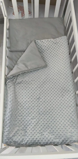 Дитяча постільна TM Elliz змінна білизна в ліжечко 3в1 з плюшу наволочка, підковдра, простирадло на гумці Сірий (SHd15)