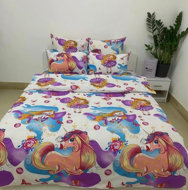 Полуторний комплект дитячої постільної білизни Єдиноріжка бязь голд