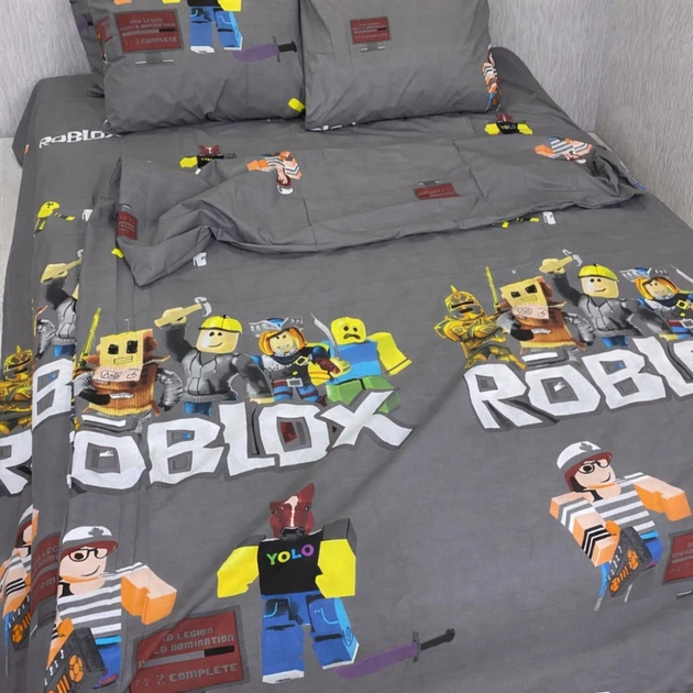 Полуторний комплект дитячої постільної білизни Роблокс Roblox сірий голд